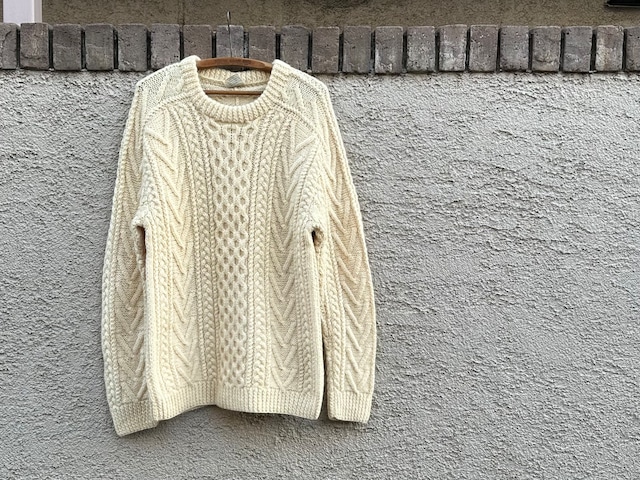 1980s INISHOWEN Aran sweater L相当 ▪︎実寸(平置き) • 着丈:75cm • 身幅:54cm • 肩幅:53cm • 袖丈:60cm ※多少の誤差はご了承ください アイルランドの老舗ニットブランド "INISHOWEN" のハンドニットアランセーター 実寸からLと推測 極太のウール糸で編まれた本格的なアラン模様 メンズ・ウィメンズ兼用でもOK 本商品は古着です 経年による風合いや使用感や小さな傷・汚れ等がある場合がございます ※極力チェックしてダメージ箇所は画像にします 古着特有の味わいや個性としてご理解いただける方のみご購入をお願いいたします 相場価格・仕入れ状況によりお値段が変動することがあります ご了承ください