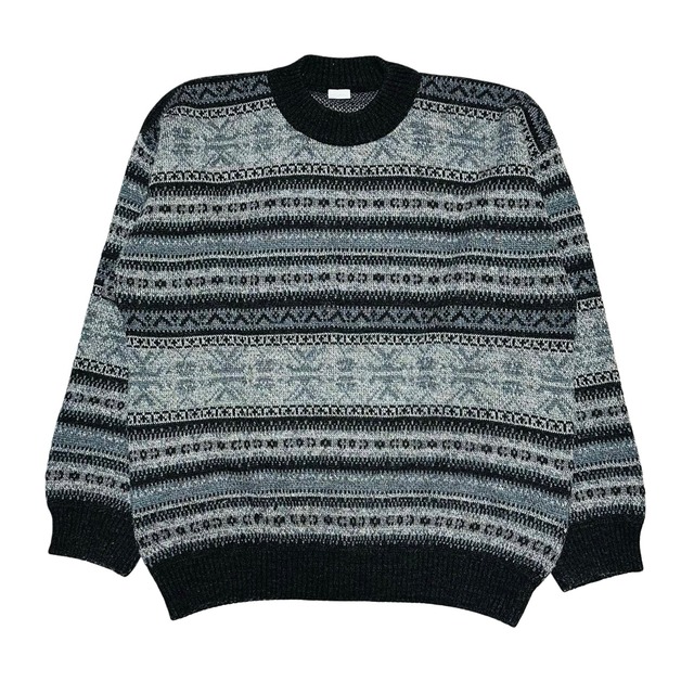 【80s】unknown Euro vintage "nordic pattern" knit sweater【L】