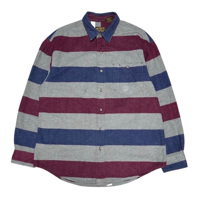 【80s】Eddie Bauer "Made in USA" wide stripe flannel shirt【L】