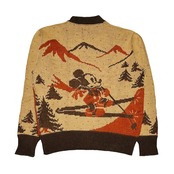 フロント・バック全面にスキー中のミッキーマウスが描かれたクラシックなジャカードデザイン
