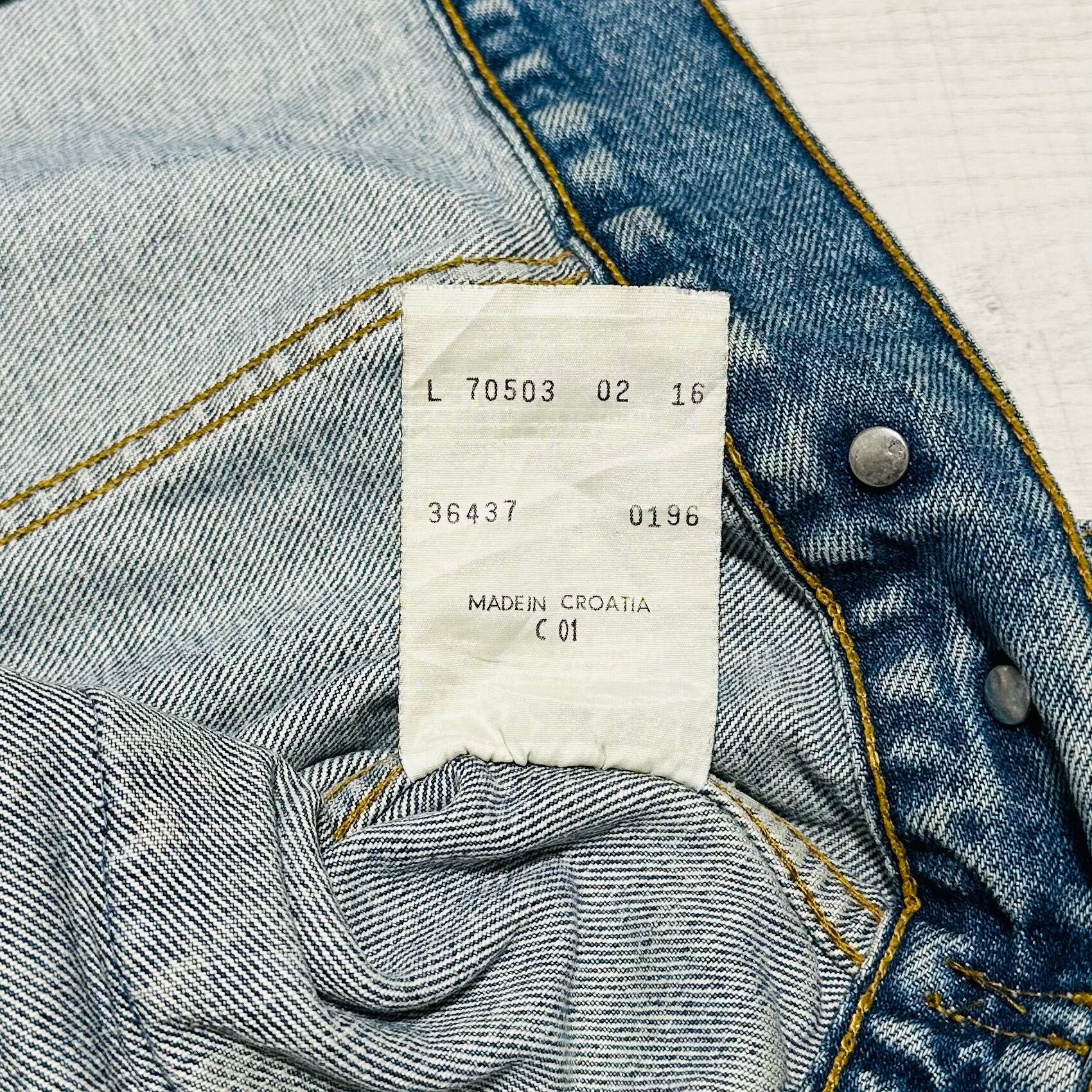 90sらしい中厚オンスのデニム生地で青味の強いフェード感が特徴