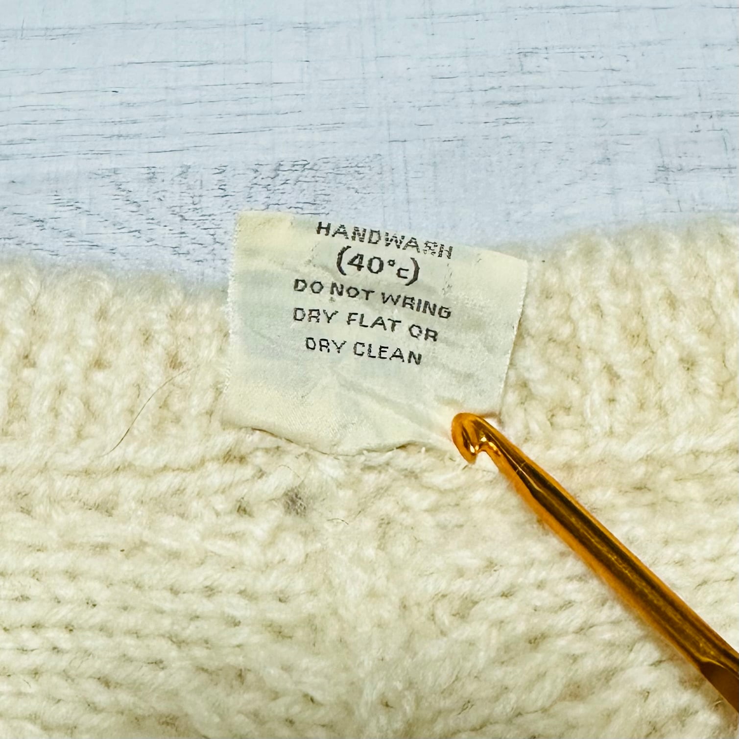 1980年代らしいタグデザインや洗濯表記(40℃手洗い/ドライ禁止)