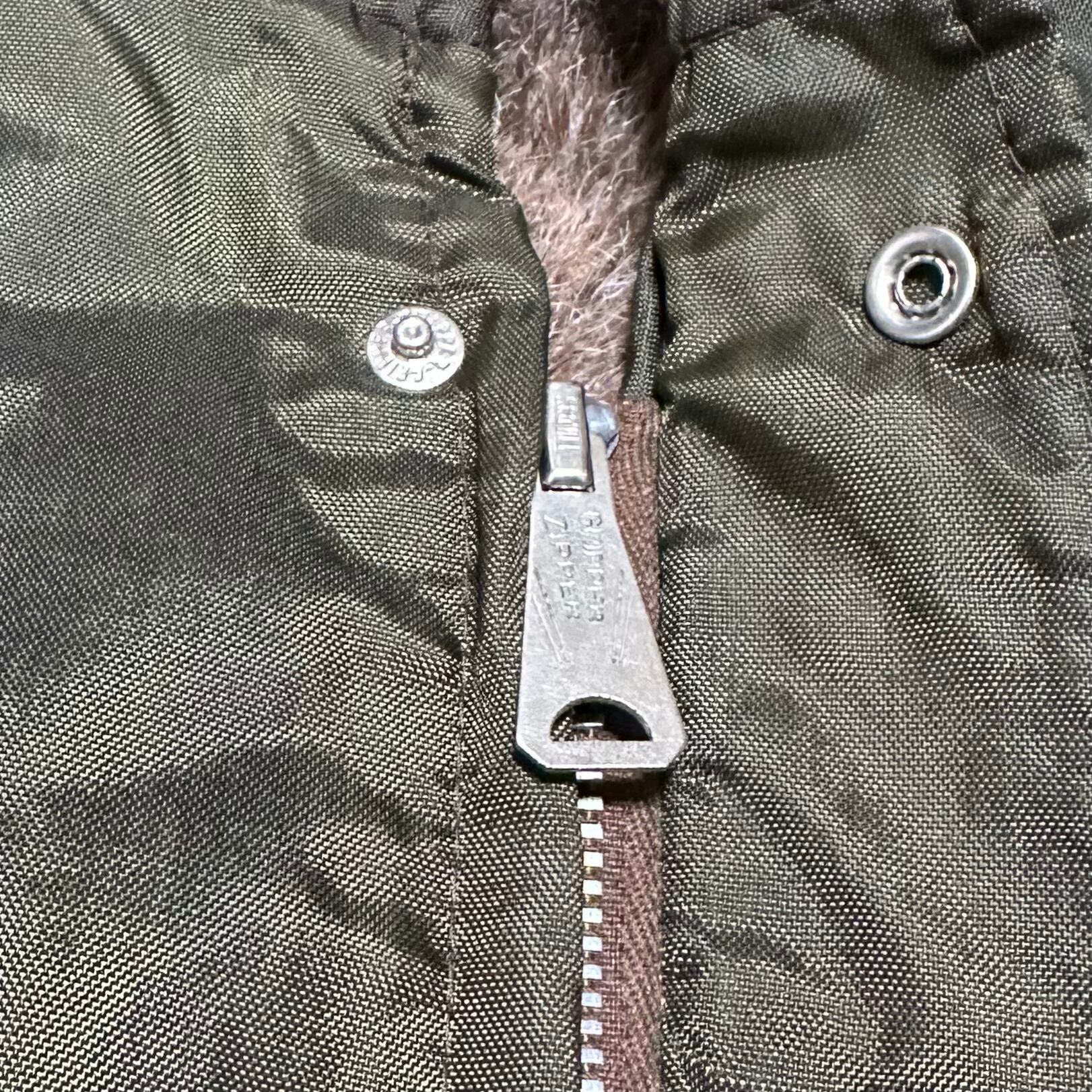 光沢のあるダークオリーブナイロンを使用したシェルに保温性の高いアクリルボアライニング仕様