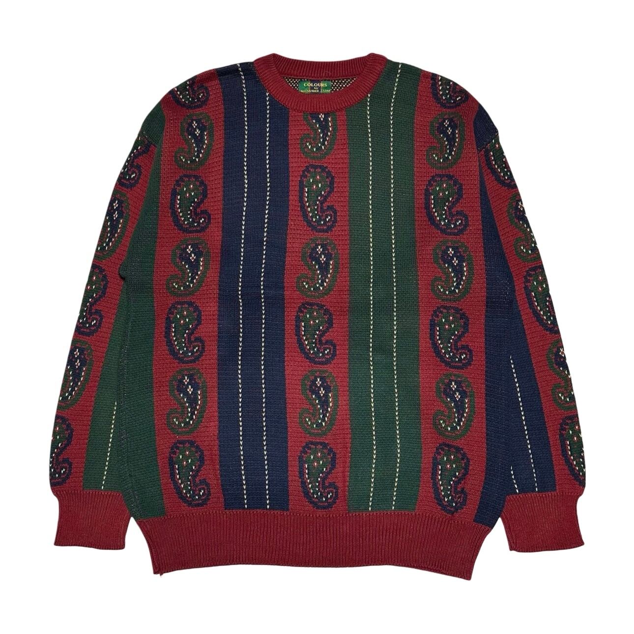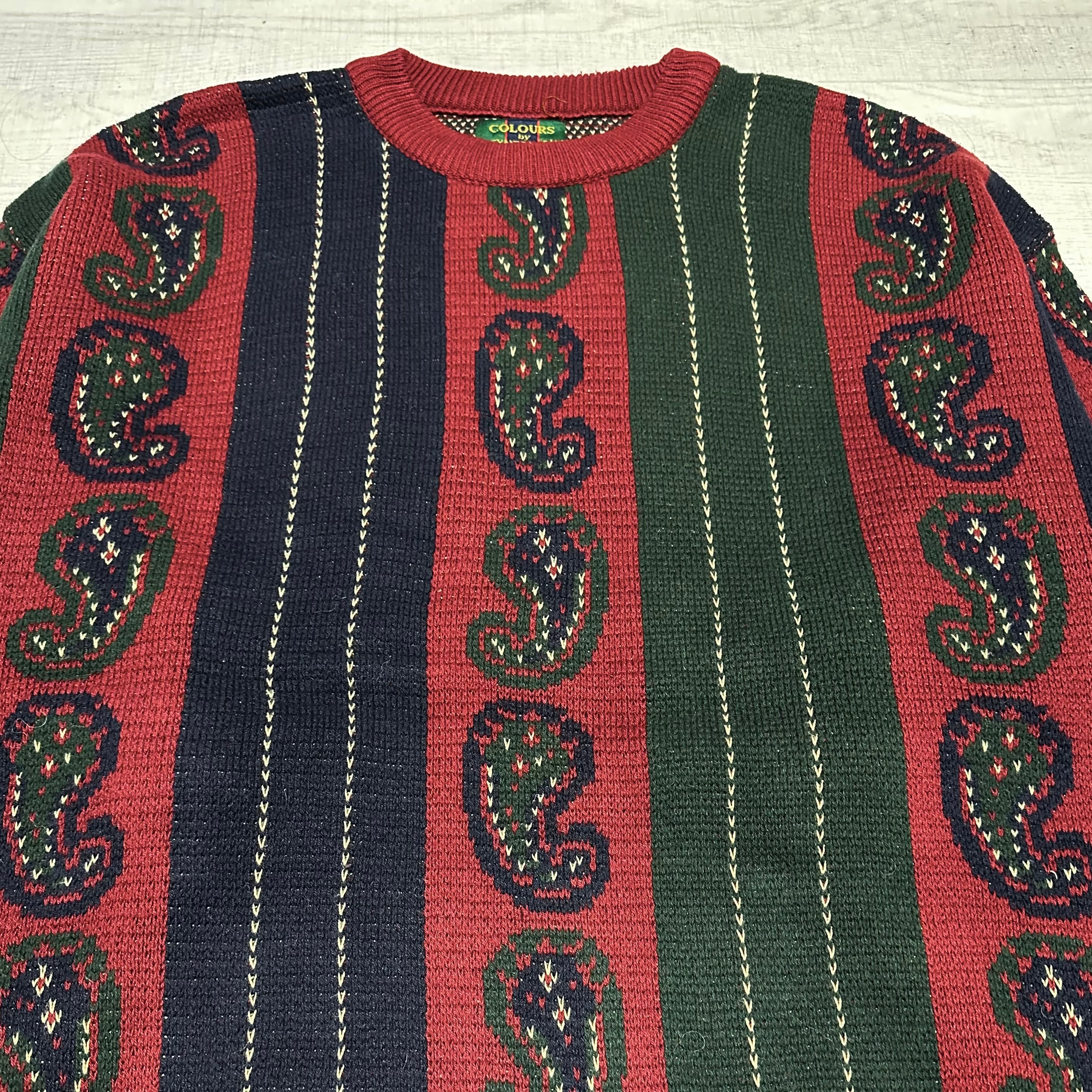 【90s】COLOURS by ALEXANDER JULIAN "Paisley Pattern" Design cotton knit sweater【XL TALL】 | Today's the Day.