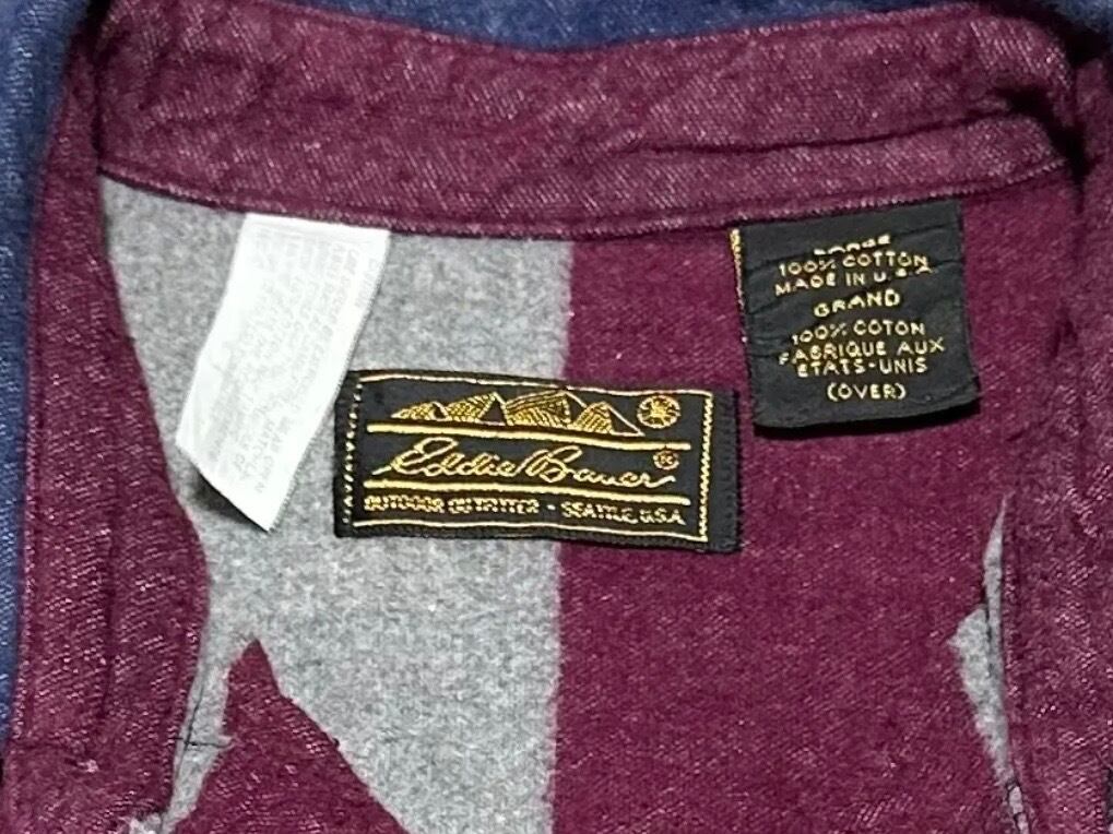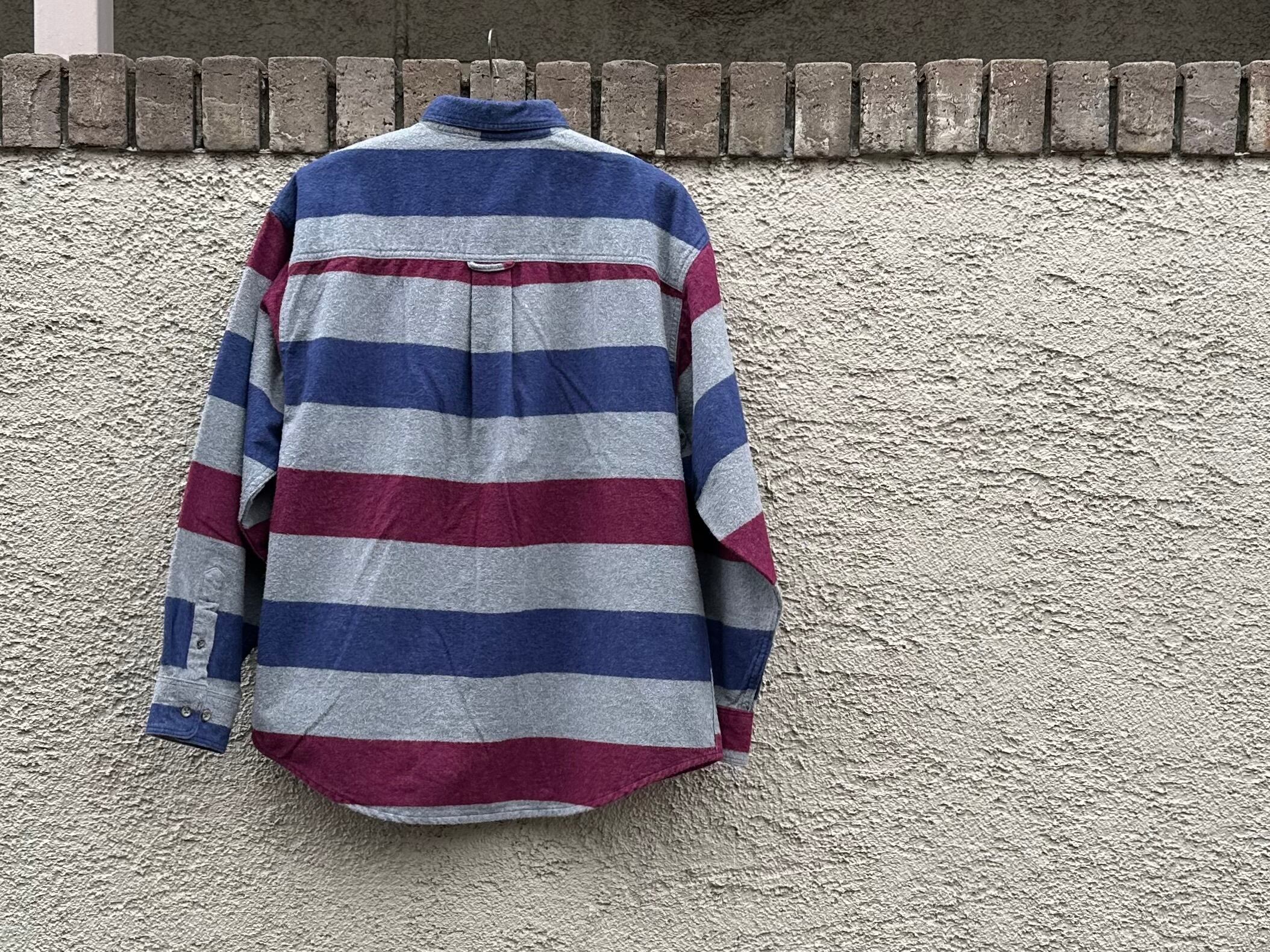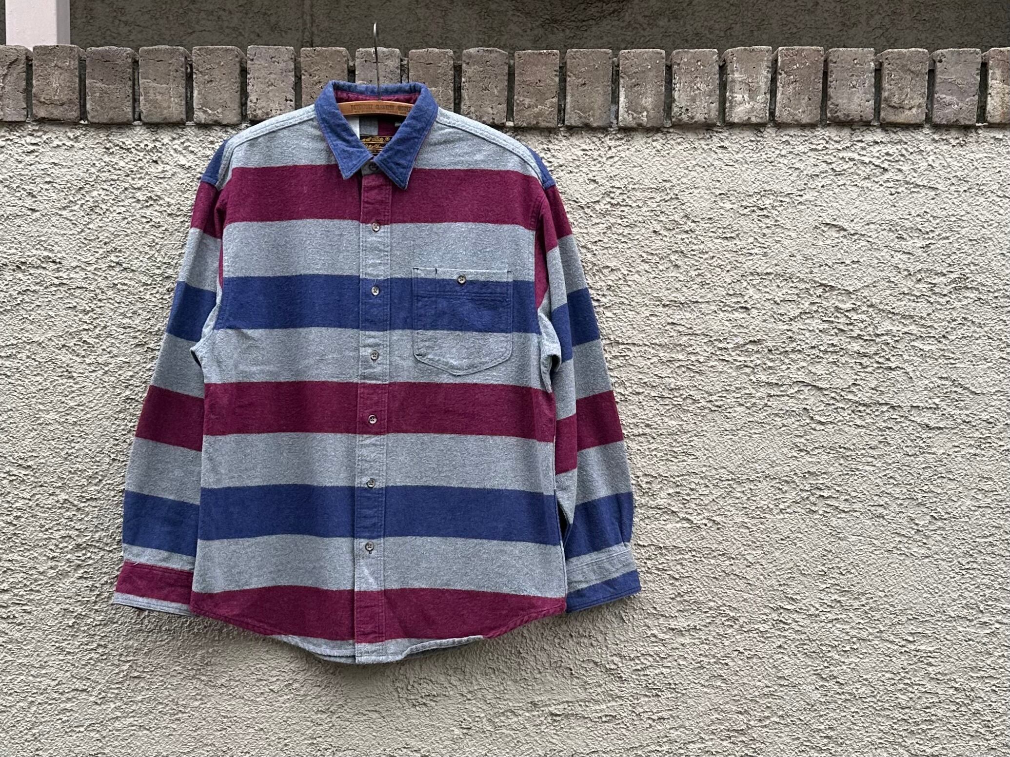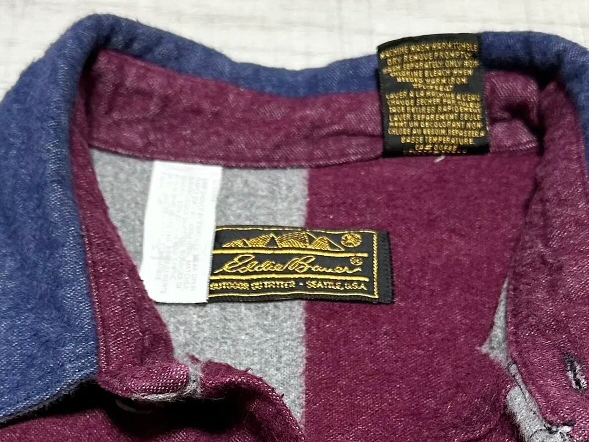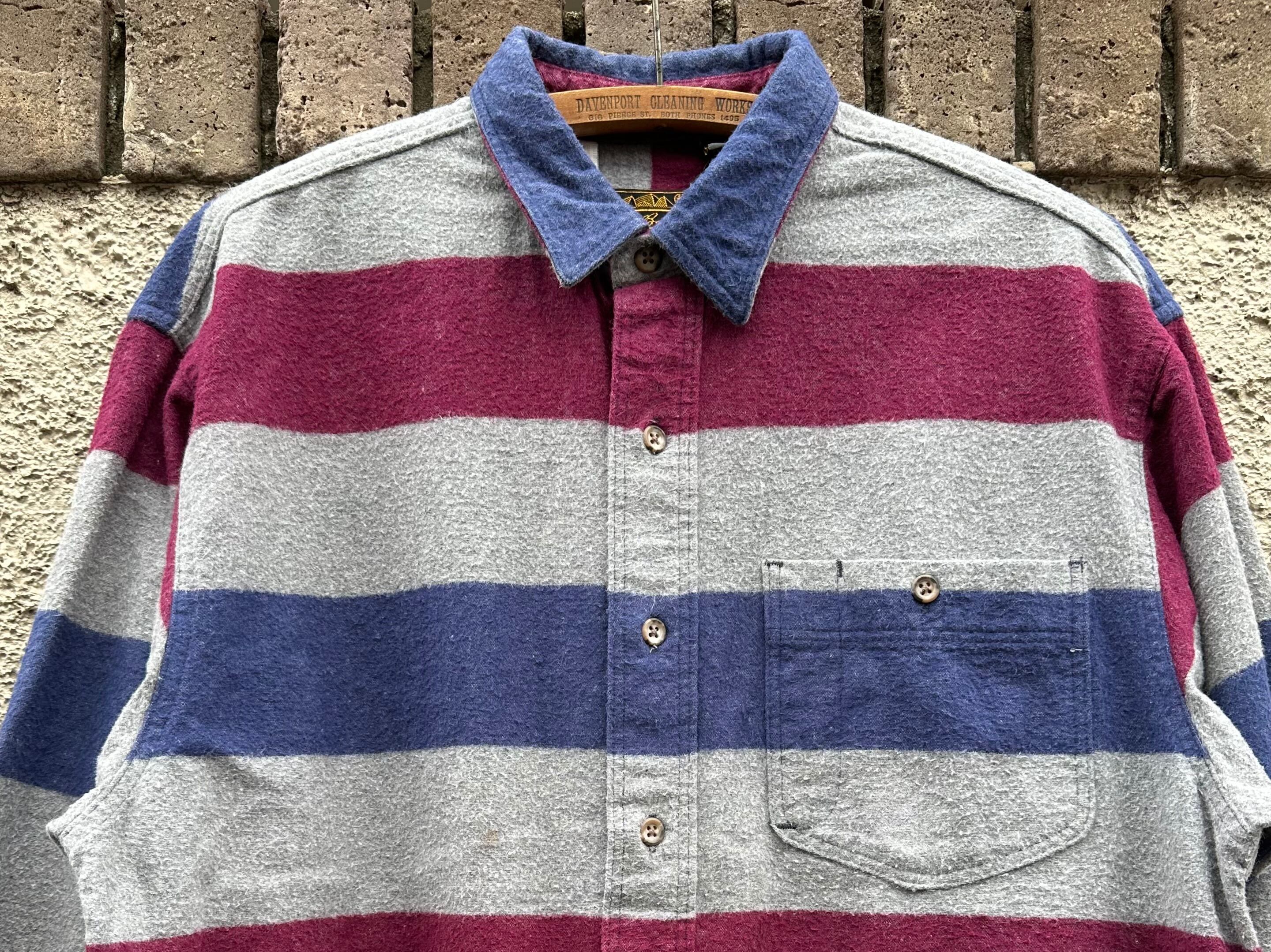 1980s Eddie Bauer wide stripe flannel shirt【L】