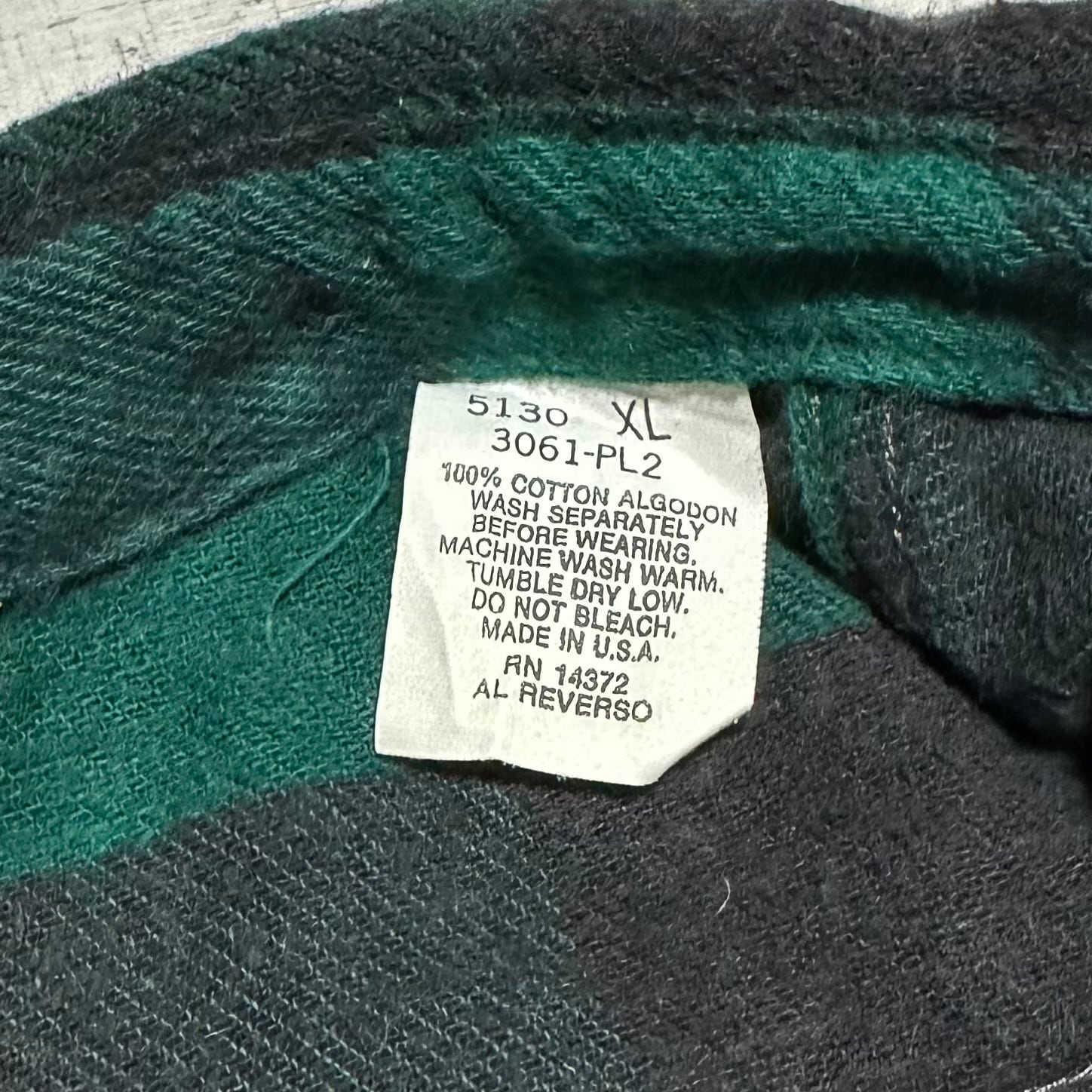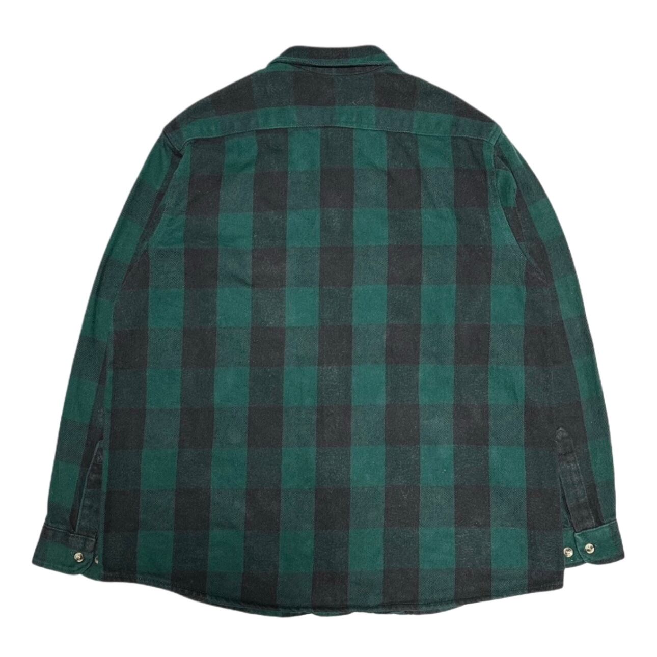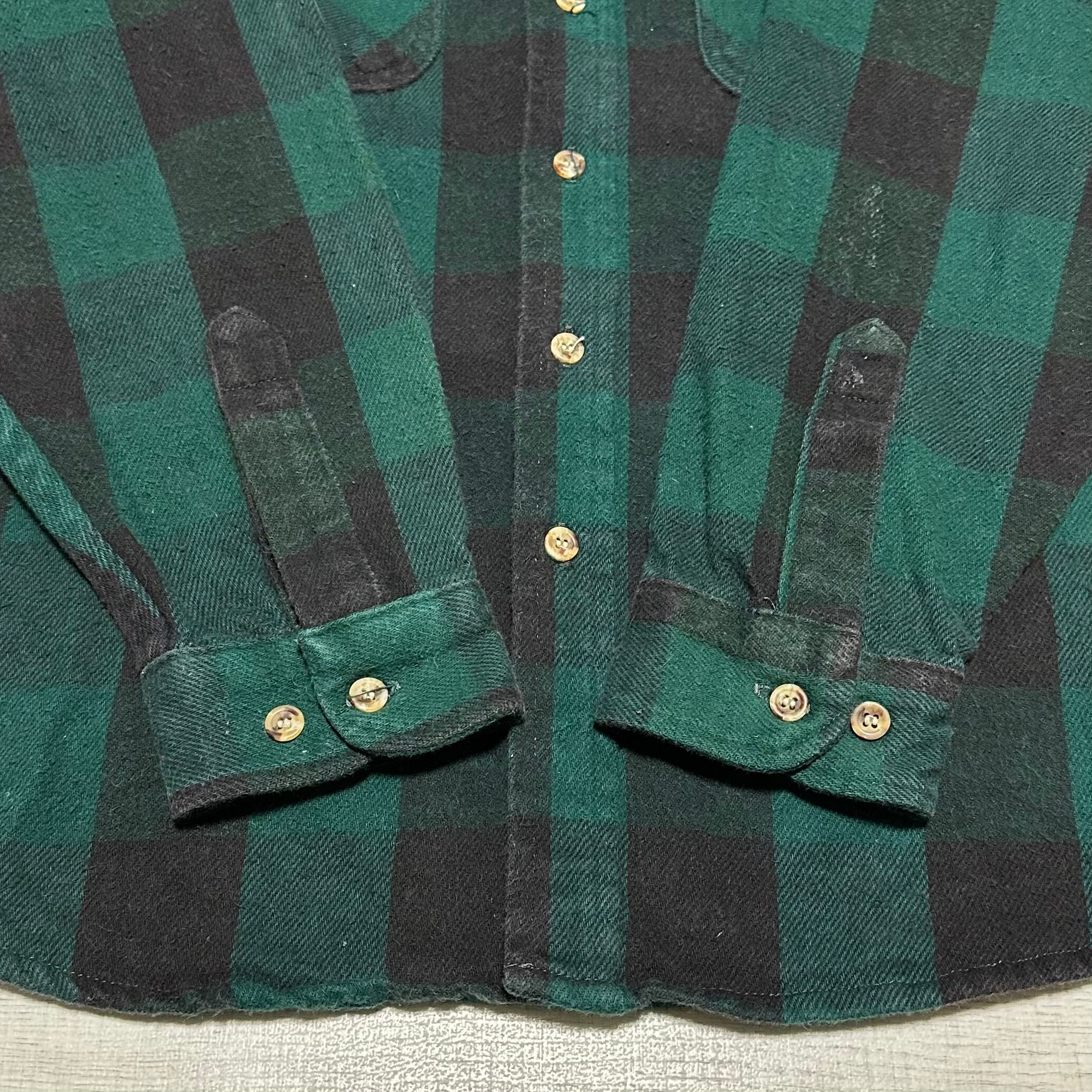ブラック×グリーンのバファローチェック柄で起毛感のあるheavy flannel生地を使用した1枚