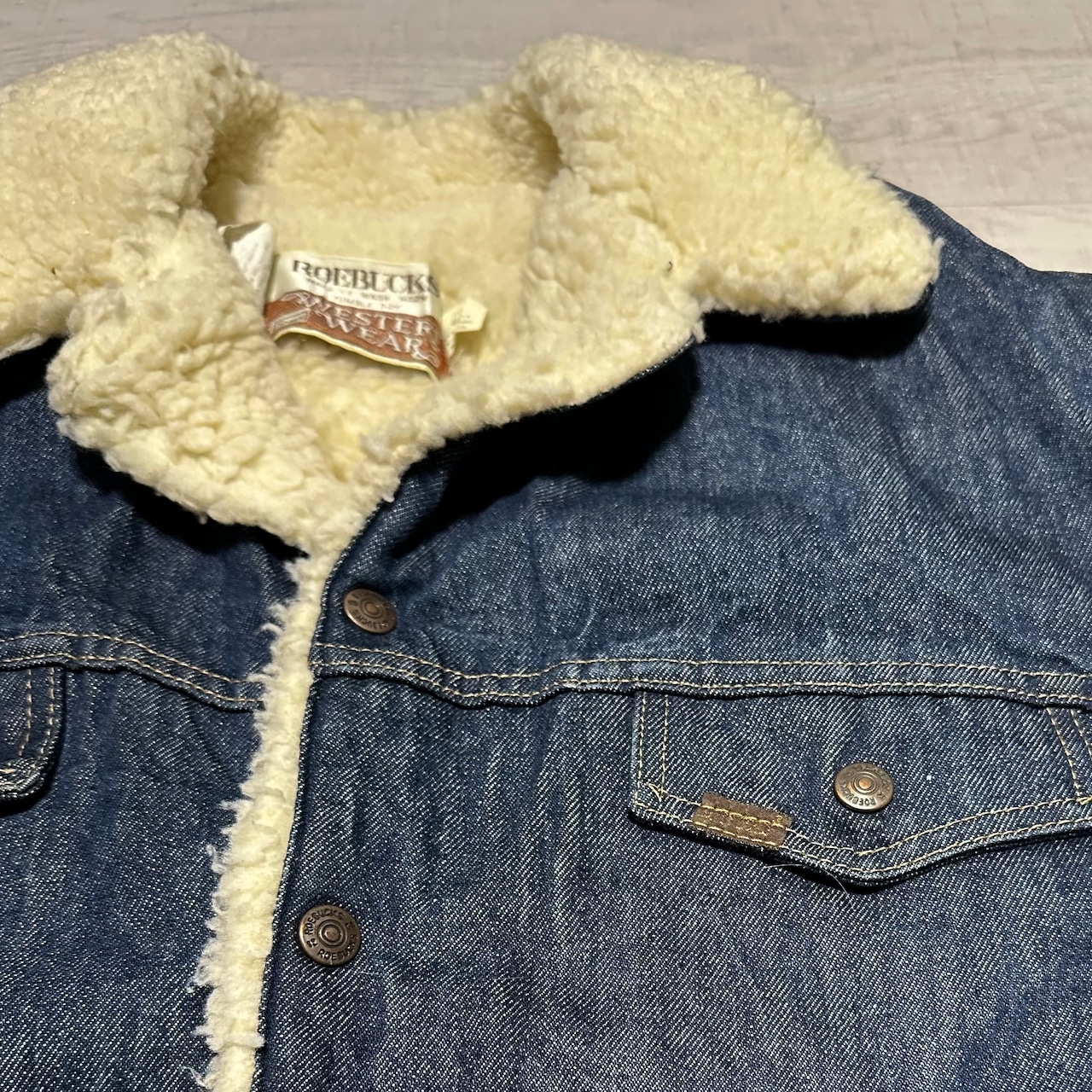 【70s】ROEBUCKS Western Wear "good condition" denim boa jacket【48】