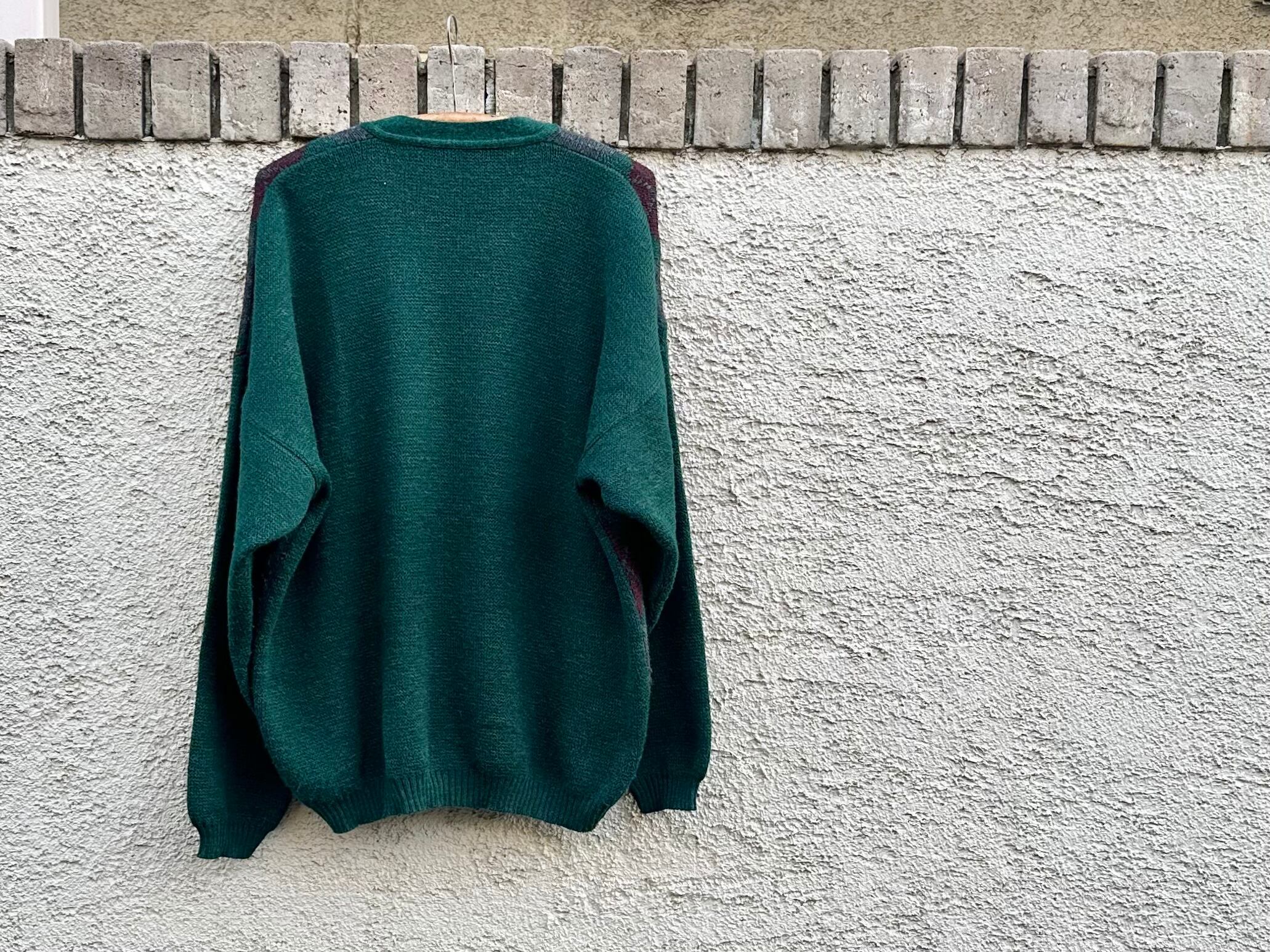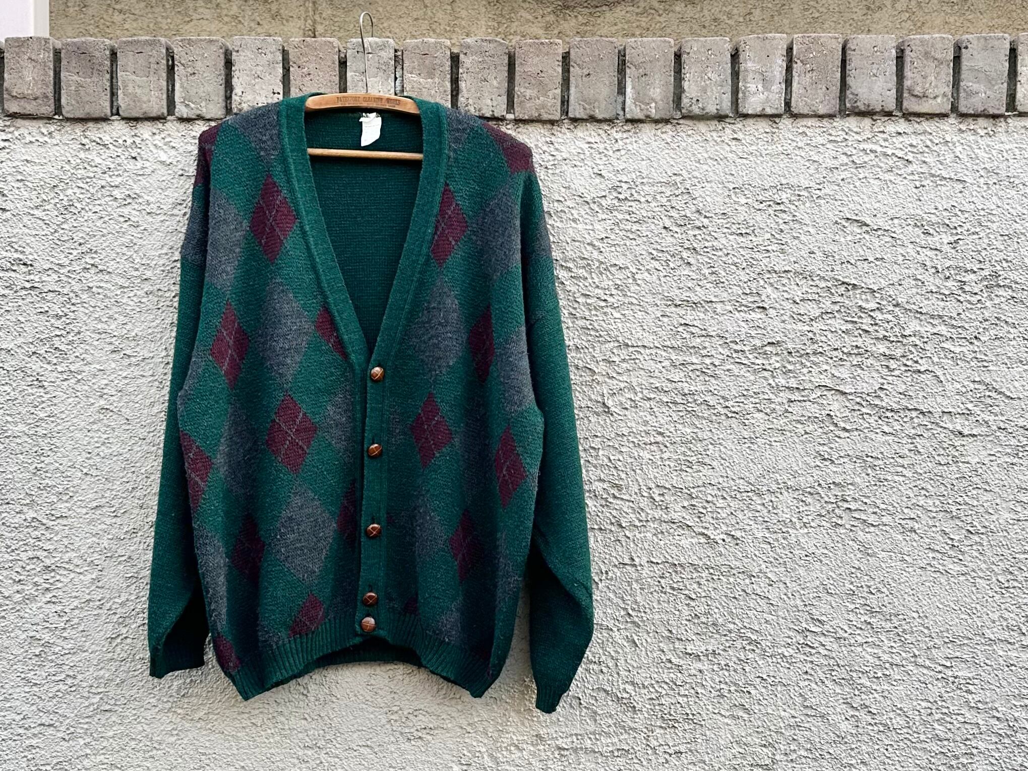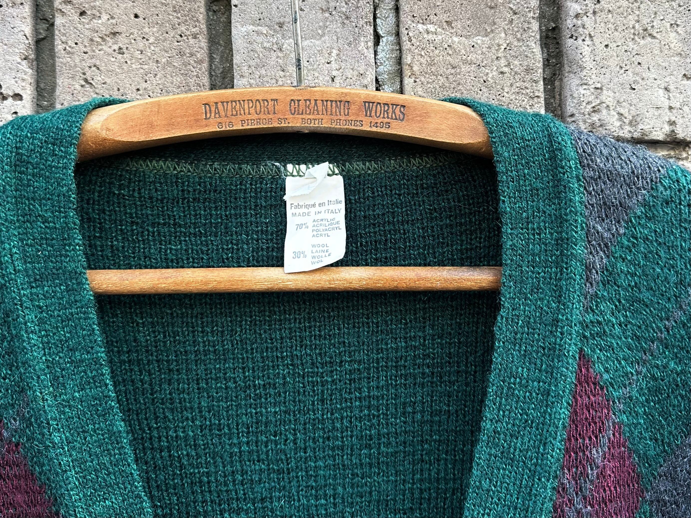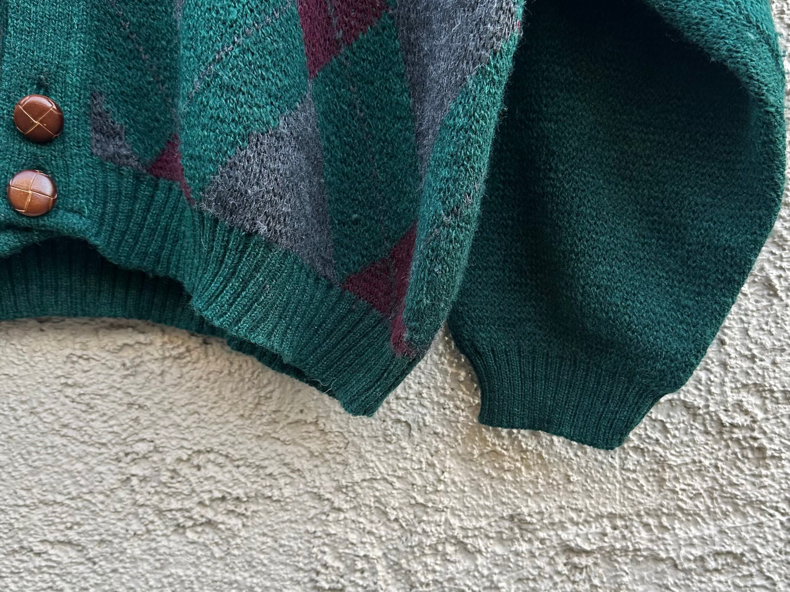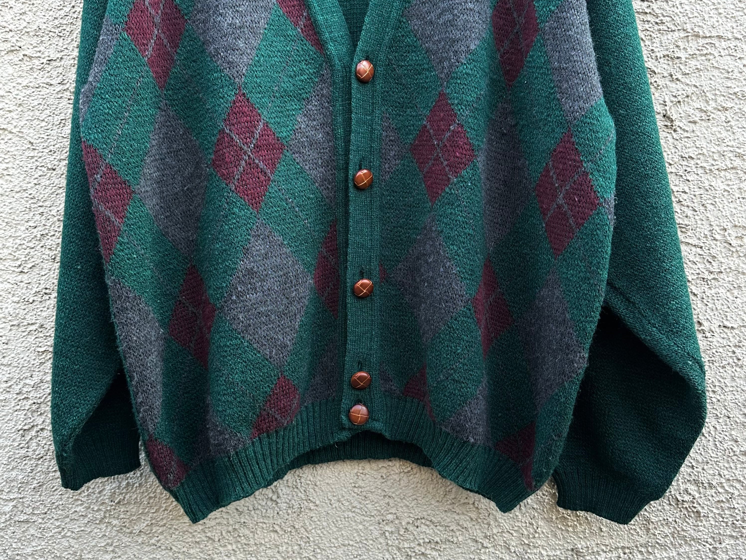 1980s unknown Euro vintage "argyle pattern" knit cardigan【XL】