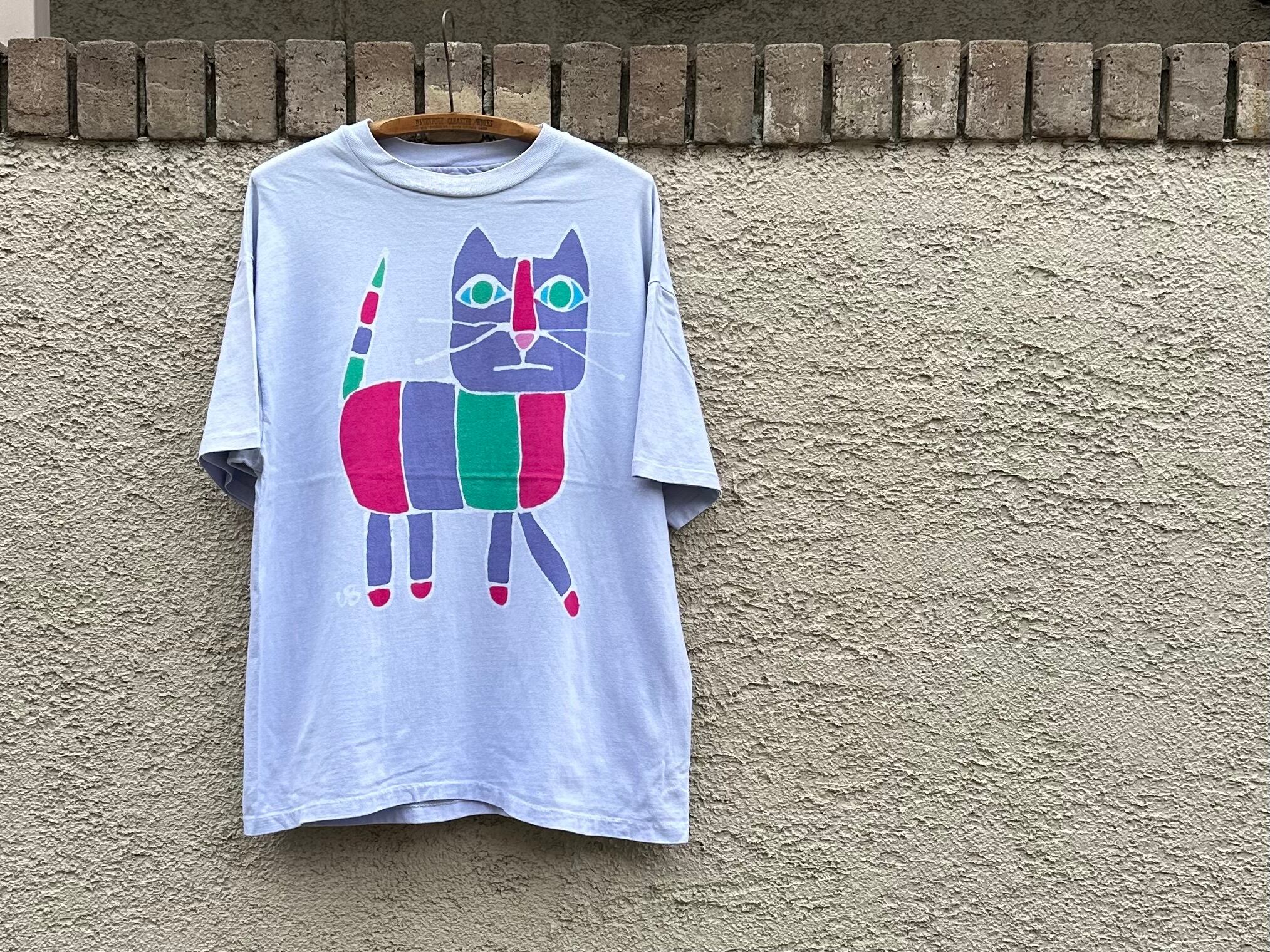 1990s "hand-dyed" cat art t-shirt【XL】